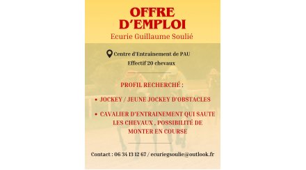 Nous proposons un poste pour un cavalier d'entrainement / jockey d'obstacles.