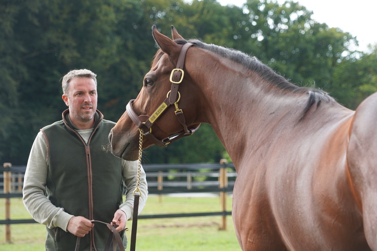 God Blessing a sailli 53 juments pour sa 1ère saison en 2025. Beau cheval bai d'1m68 au garrot, God Blessing reste proposé à 3 000 € HT/PV la saillie pour sa 2e saison de monte. Des conditions tarifaires spécifiques sont proposées pour des juments black-type et/ou mère de black-type.
