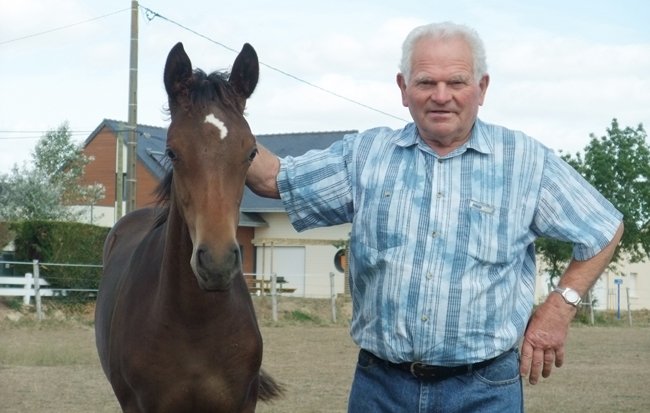 Henri Aubert, l'éleveur de Kauto Star ici avec sa soeur par Byzantium née en 2009. Il voyait alors ses terres prises par la construction d'un lotissement au Lion d'Angers, qui a recouvert tous ses prés.
