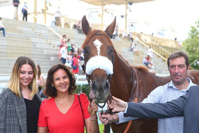 Mouna Bengeloun aux côtés d'un Bubble Gift très joueur après son succès dans le prix Niel (APRH)