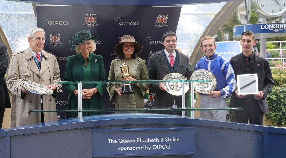 Christopher Head, Leopoldo Fernandez Pujals, Aurélien Lemaitre, et Ebbe Verhestraeten (jeune jockey et cavalier d'entraînement de Big Rock), récompensés par la famille royale anglaise (photo Jean-Charles Briens)