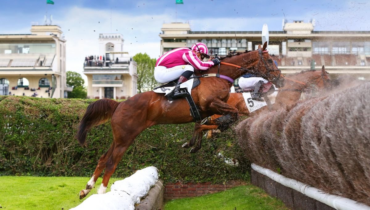 Robert Gashe-Luc et sa femme Monique posant fièrement avec les trophées du Grand Steeple-Chase de Paris