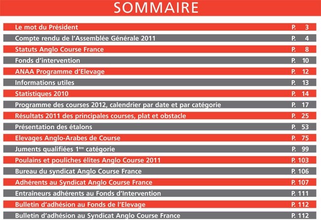 Quelques jours avant le lancement du grand département ELEVAGE / COURSE du site internet www.anglocourse.com, le Syndicat AngloCourse France sort son guide papier pour l'année 2012. Vous pouvez télécharger entièrement ce précieux document, riche et détaillé pour mieux connaître le monde de l'Anglo-Arabie.