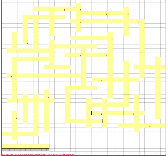 Soyez perspicaces...Voici une grille à remplir avec les étalons têtes de liste en France en 2012 en OBSTACLE. Un indice pour commencer la grille se trouve en bas du tableau.
