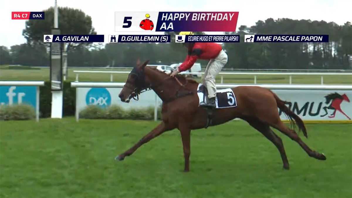Troisième en débutant du Prix Carabine, sur l'hippodrome de Tarbes-Laloubère, Happy Birthday n'aura eu besoin que de sa deuxième sortie en piste pour passer le poteau en tête. Celui de Dax en l'occurence, où le 19 mai dernier elle s'est en effet imposée haut la main dans le Prix Dunamis, avec Alexandre Gavilan sur le dos. Vite en tête, cette pensionnaire de Didier Guillemin a accéléré en progression à la sortie du tournant final, avant de bien repartir sous toutes les attaques dans la dernière ligne droite. La deuxième place a été prise par Hindabad (War Command), deux longueurs et demie plus loin, et la troisième par Ma Coralie (Paban de France), encore deux longueurs et demie plus en retrait.