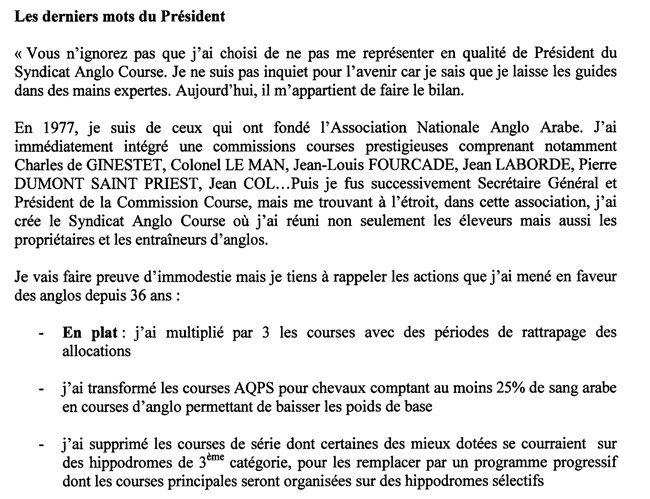 Elu Président au Syndicat AngloCourse le 19 octobre à Tarbes, succédant à ce titre à Christian Bellot qui bouclait un excercice de 13 ans et l'avait lui-même proposé comme...