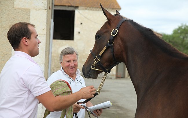 La complicité du père et du fils dans le travail au quotidien. Mathieu et Frédéric Daguzan-Garros préparent 7 yearlings pour les ventes d'août de Deauville.