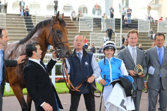 C'est le tandem de dimanche à Longchamp ! Le propriétaire-éleveur S.A. Agan Khan et le jockey Christophe Soumillon peuvent avoir le sourire, ils ont remporté deux des trois groupe III au programme !