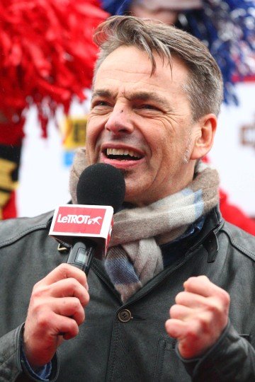 En amoureux des chevaux, Thierry Lhermitte se balade dans les écuries et converse avec les professionnels comme Pierre Vercruysse.