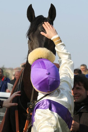 Ca vaut bien une caresse pour l'élève de Fabrice Vermeulen qui venait juste de passer sous cette casaque après son bel hiver cagnois.