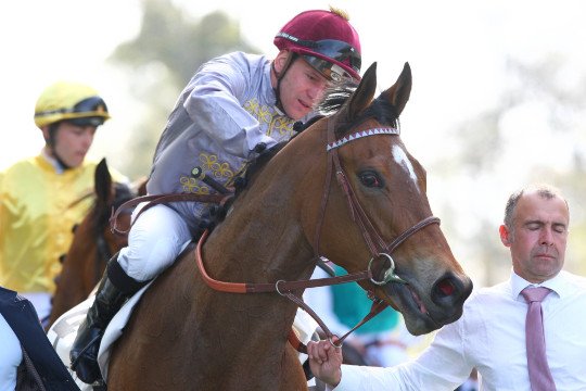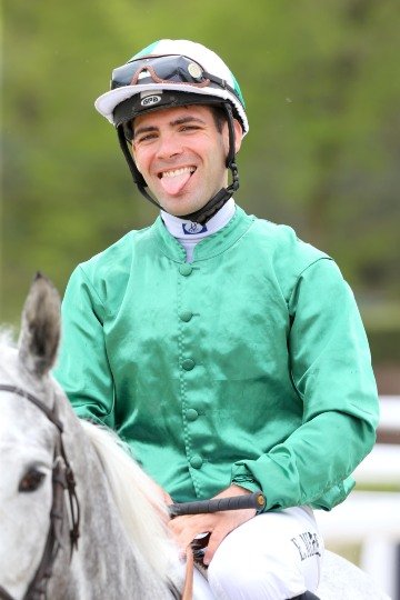 Grégory félicite sa partenaire Qemah, fille de Danehill Dancer