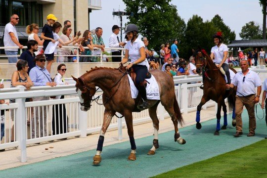 En tête Fortezzo recyclé après 5 ans de carrière de courses, suivi de Cirrus des Aigles qui formait un trio d’excellence avec Mme Corinne Barande Barbe et Christophe Soumillon