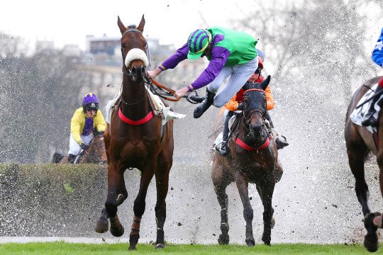 Les dimanches au galop sont de retour à Auteuil. Attention l'obstacle arrive trop vite!