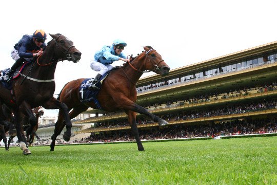Monté patiemment, Olmedo a fourni une longue accélération pour prendre l'ascendant sur l'anglais Hey Gaman et le français Dice Roll.