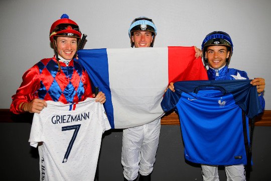 Que c'est beau !!! La voici, la 2ème étoile sur la maillot de l'Equipe de France, supportée par tout un pays et par ses jockeys, avec ici Antoine Hamelin, PC Boudot et Maxime Guyon !