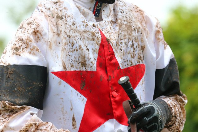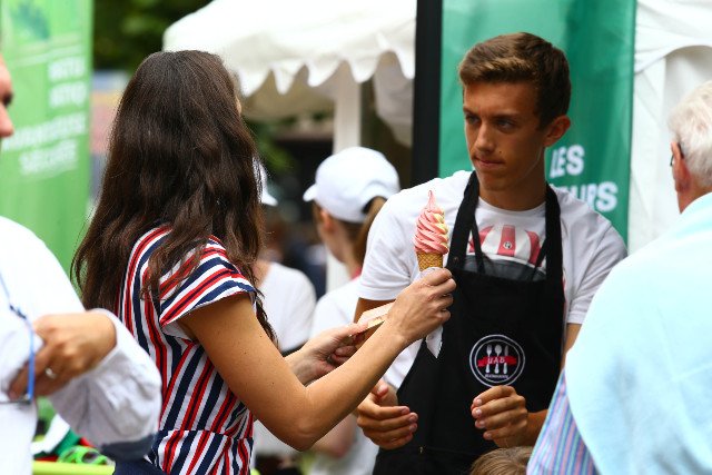 Tel un Prince, Vincent Cheminaud offre ses lunettes à un turfite, ou un futur turfiste, espérons-le, en rentrant de sa victoire avec Alwaab (Toronado), dans la listed prix Nureyev