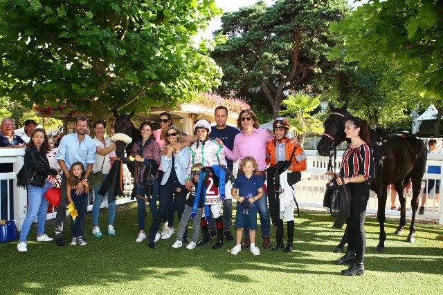 La famille et les amis Caullery réunis pour la victoire de Cirrus Minor (George Vancouver) entraîné par Marine Henry. Nicolas Caullery conclut 4ème dans la course pour les couleurs de son frère.