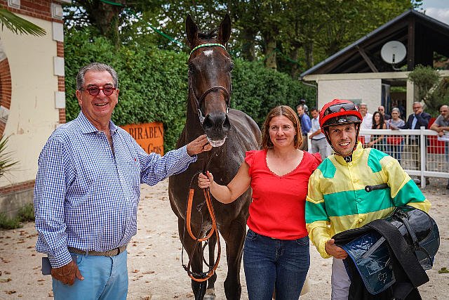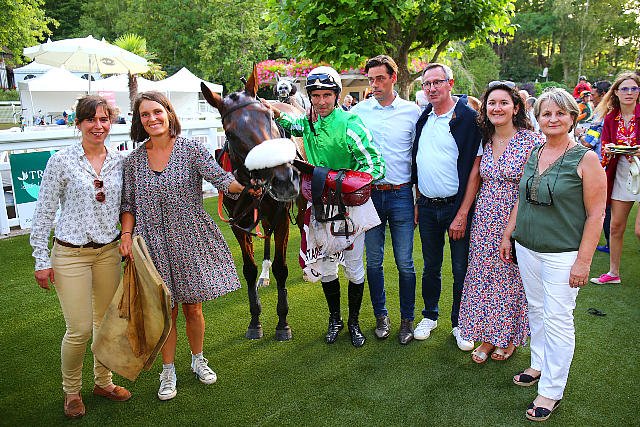 L'entraineur Ludovic Gabdin gagne sa 1e Listed avec Lova montée par Maxime Guyon dans le Critérium du Béquet.