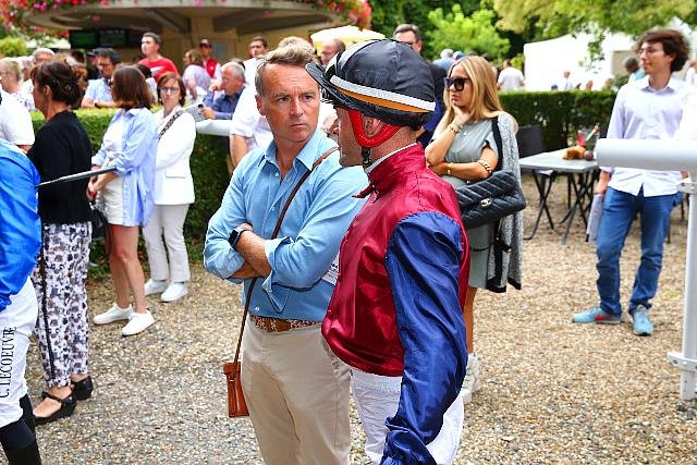Ambiance typiquement deauvillaise à Clairefontaine avec Francis Graffard en compagnie d'Olivier Peslier.