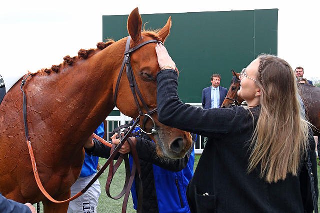 Lundi à Saint Cloud : Tribalist vainqueur du Prix du Muguet Gr.2 félicité par Louise Benard.