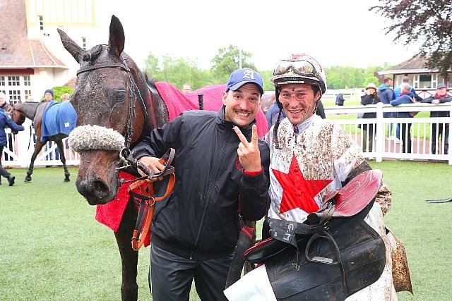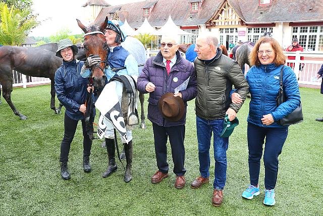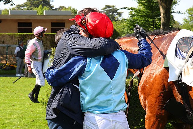 Mercredi à Compiègne : le gros bisou de Johnny Charron à Geelong Sport après leur victoire dans le Prix Romati (Gr.3).