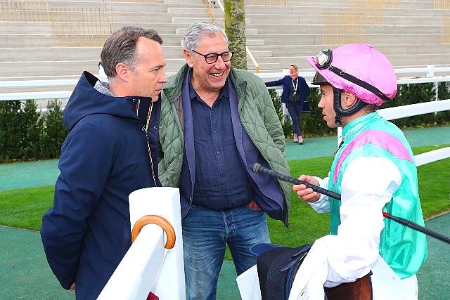 Jeudi à ParisLongchamp : debrief entre Mickael Barzalona, Francis-Henry Graffard et Claude Beniada.