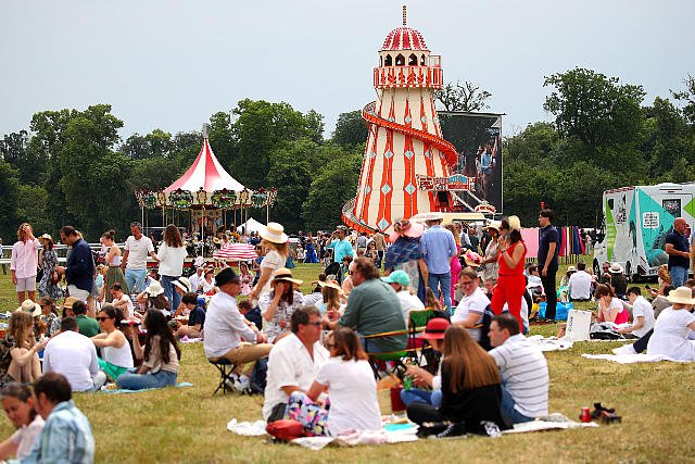 Dimanche à Chantilly : le public en plein divertissement au milieu de l'hippodrome entre chaque épreuve.