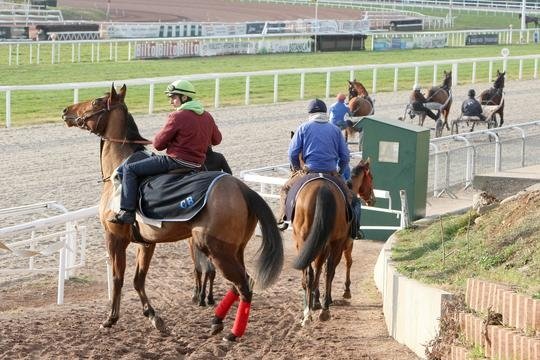 Quand trotteurs et galopeurs partagent les pistes de Cagnes le matin...