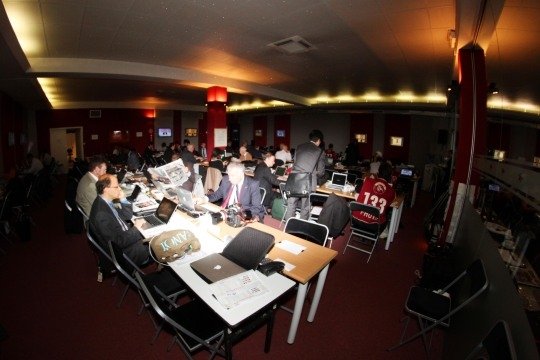La salle de presse sous pression de stress avant l'évenement .