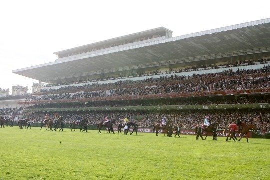 Bienvenue sur l'hippodrome de Longchamp re-décoré pour l'occasion façon Qatar