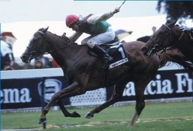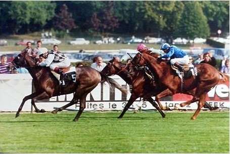 Il a fallu signer un bon d’achat à hauteur d’1.700.000 F. (second top-price des ventes) pour la fille de Sanglamore aux ventes de yearlings à Deauville qui s’est appelée, Onéreuse ! (la bien nommée). Il faut dire que son frère, Winged Love (In The Wings) venait, un mois plus tôt, de remporter l’Irish Derby suivi d’une 4ème place à Ascot dans les King George de Lammtarra. En juin, il avait pris le second accessit du Prix du Jockey Club de Celtic Swing qui avait devancé un certain Poliglote.