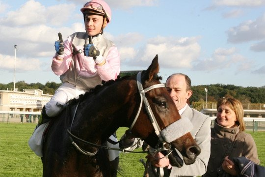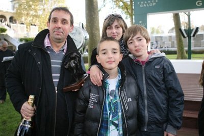 Avec son cheval, sous la casaque de ses amis portée par son propre fils, Julien Guillochon, qui est le neveu de Jean-Luc Guillochon (par son mère née Fouassier, à l'époque avec Yannick Guillochon) et d'Adrien Fouassier (par sa mère). Encore bien jeune, Julien Guillochon venait de conclure 2e du Prix Chaudenay (Gr.2) la veille de l'Arc avec son pensionnaire qui avait de l'allant. Là, il a encore osé quelque chose de plus fort. Il a prix 8 longueurs, a laissé souffler son cheval dans la fausse ligne droite, le temps de laisser ses rivaux le croire battu, puis il est reparti comme une fleur et son jockey ne s'est plus retourné. On imagine la joie familiale avec aussi les 2 co-propriétaires Stéphane Seignoux, ancien jockey d'obstacle, mari de Valérie, et Laurent Mustière, qui se surnomment entre eux...les beaufs tout simplement parce qu'ils sont beaux-frères..