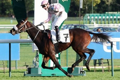 Tout son entourage de l'éleveur au jockey jusqu'à l'organisateur de la vente, c'est une grande 1e dans un Gr.1 en plat, et même dans un Groupe en plat tout court ! Et c'est sans doute une 1e mondiale dans un Gr.1: un jockey de 19 ans gagne pour un entraineur qui est...sa mère !