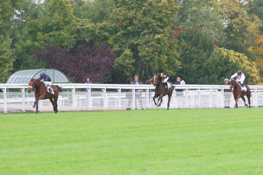Muhtathir, fils d'Elmaamul stationné Haras du Mézeray, remporte le Prix Pierre de Lassus Gr.3 devant Dream Well, avec Yankee Hill un hongre élevé par l'Ecurie Liberty pour Jean-Philippe Dubois.