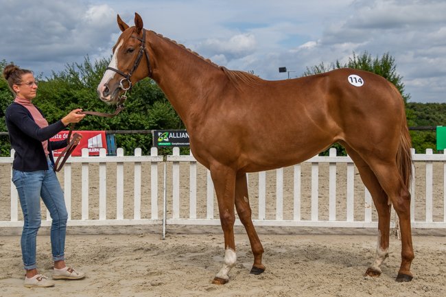 Dans le pendant des plus tardifs, une autre pouliche est également parvenue à s'attirer les faveurs du jury, en l'espèce d'une représentante de l'Écurie de la Colmine de Dorothée Dezellus (lot n°54), issue quant à elle du croisement entre Choeur du Nord et d'une mère par Spirit One, apparentée à la même souche que le top sauteur Tamarinbleu (Victor Chandler Chase, Gr.1). Magnifiquement présentée, elle n'a d'ailleurs pas perdu de temps pour décrocher le second "bâton" de sa (très) jeune carrière, se voyant décerner le titre de Championne Suprême lors de la grande finale des foals.
