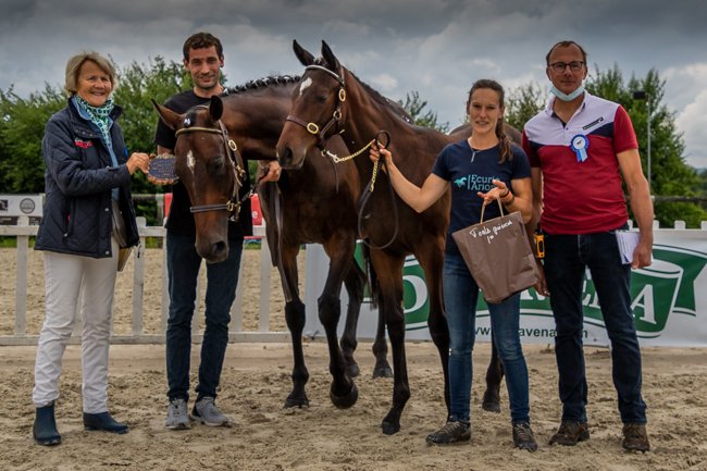 Aliette Forien et Pascal Noue, récompensant l'Écurie de la Colmine et cette fille de Choeur du Nord, championne des foals tardifs...