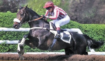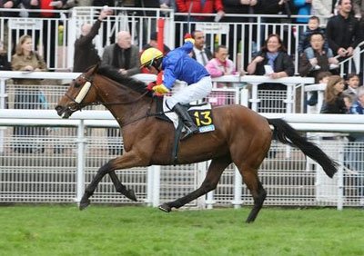 C'est sûr que les anglais l'adorent, surtout grâce aux résultats de ses produits ces derniers mois dans les Gr.1 Outre-Manche (Quel Esprit, Quito de la Roque) mais aussi de Salut Flo qui s'est imposé dans un Gr.3 à Cheltenham en 2012. Sa cote est au plus haut et il fait partie du clan des "gros noirs" qui excite le rosbeef rien qu'à l'évocation de son nom et font s'écarter les côtés des portefeuilles plein de pounds aussi promptement que les cuisses de la goulue face à Toulouse Lautrec.