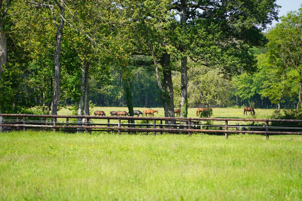 En chiffres, le Domaine de l’Etang s’étend 200 hectares réservés où cohabitent les chevaux, les bovins et les cultures de blés, paille, avoine, orge, maïs, etc... D'ailleurs, le haras est entièrement autonome en terme de fourrage mais aussi d'alimentation.