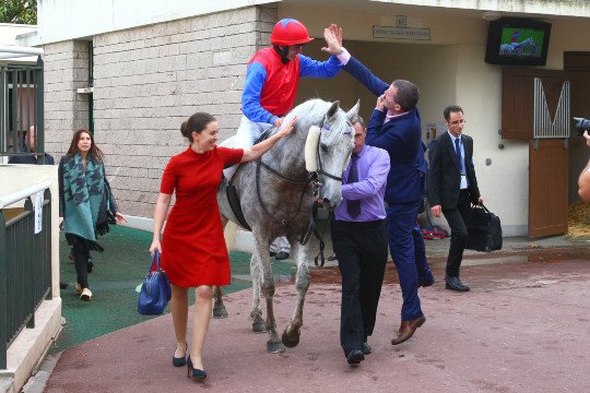 Belle photo souvenir pour la pensionnaire de Robert Collet, seule femelle lauréate de Groupe 1 ce week-end.