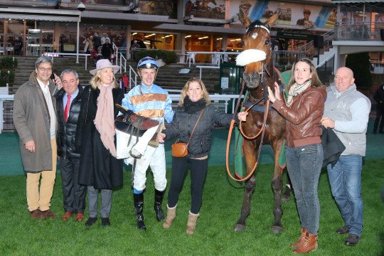 Guillaume Macaire a du apprécier la troisième victoire cette saison à Auteuil de sa protégée; ainsi que le monte de Bertrand Lestrade.