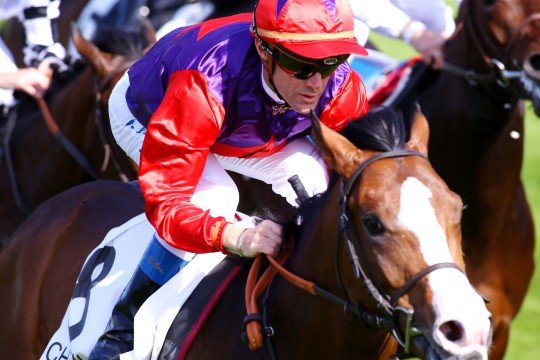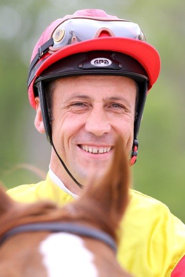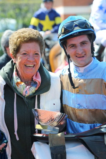 Grégory félicite sa partenaire Qemah, fille de Danehill Dancer