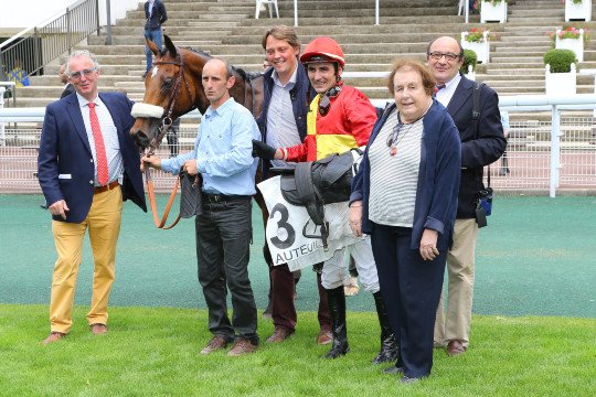Tzar's Dancer & Wilfrid Denuault enlèvent le Prix Rigoletto Listed - Entraînement de Mrs E&G Lennders - ici aux côtés de Mme De Saint-Seine (éleveur et co-propriéatire)