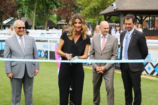 Sophie Thalmann coupe le ruban pour l'inauguration du Meeting Deauvillais 2016, aux cotés de Mrs Philippe Augier, Marcel Chaouat et Olivier Louit