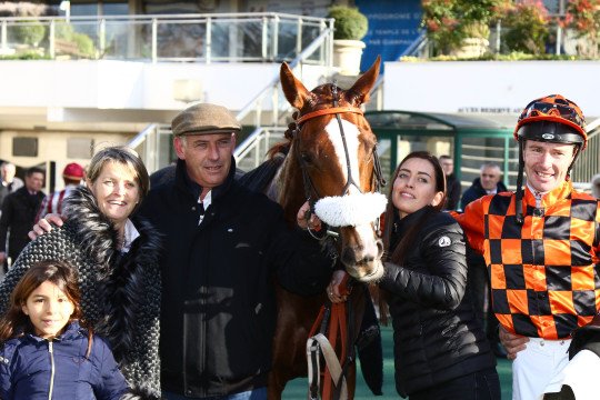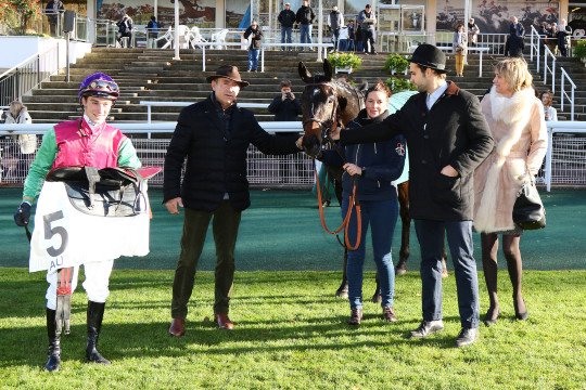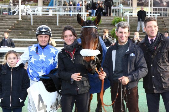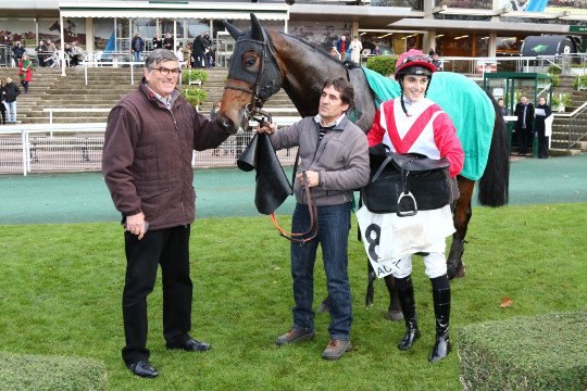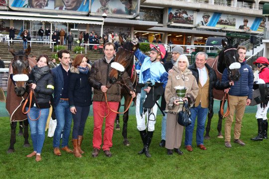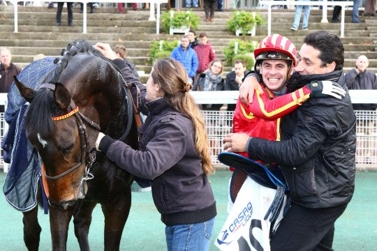 La joie de l'entourage de Square Beaujon qui ouvre son palmarès à 7ans, associé à Anthony Lecordier pour l'entraînement de M.David Windrif