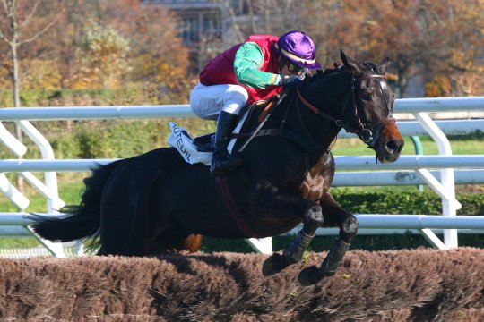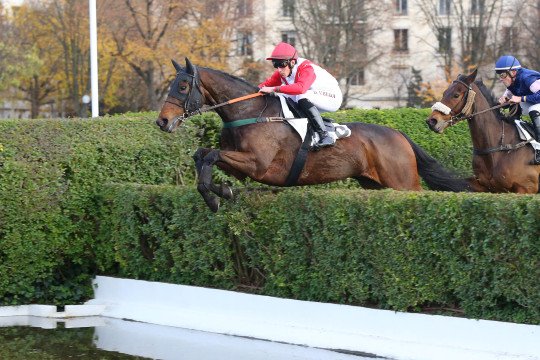 La Symphonie (fille de Martaline) & Olivier Jouin remporte le Prix Huron, un Steeple-chase long de 4300m, pour l'entraînement de M.Donatien Sourdeau de Beauregard