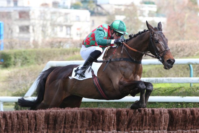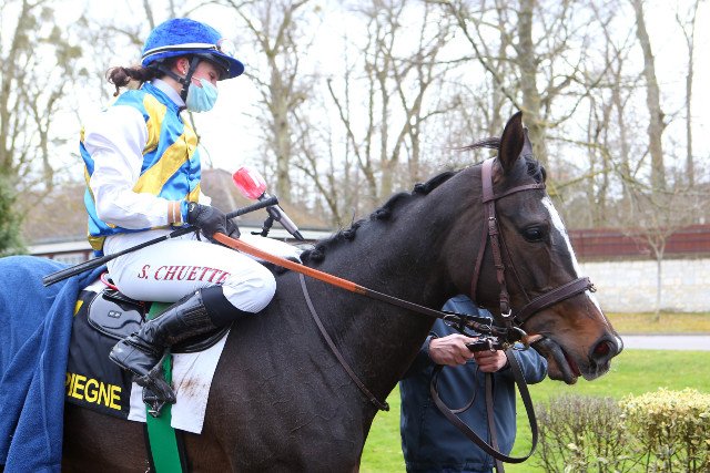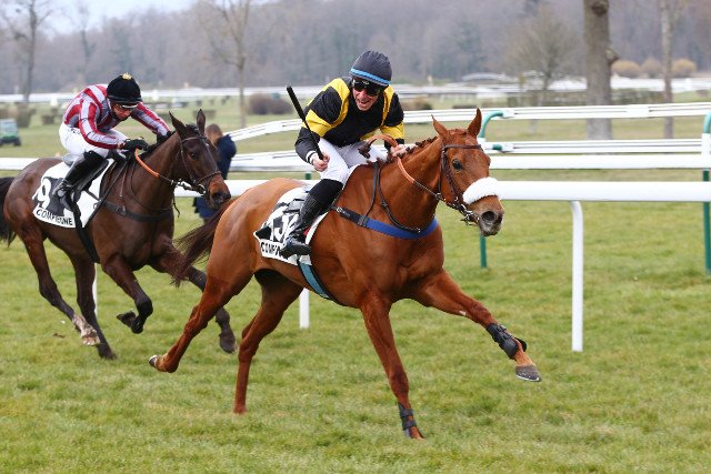 Mardi à Compiègne : Benjamin Gelhay, en selle sur Manon des Sources (No Risk At All), enlève le Prix Spumate (Listed), et signe le 120e succès de sa carrière, en obstacles
