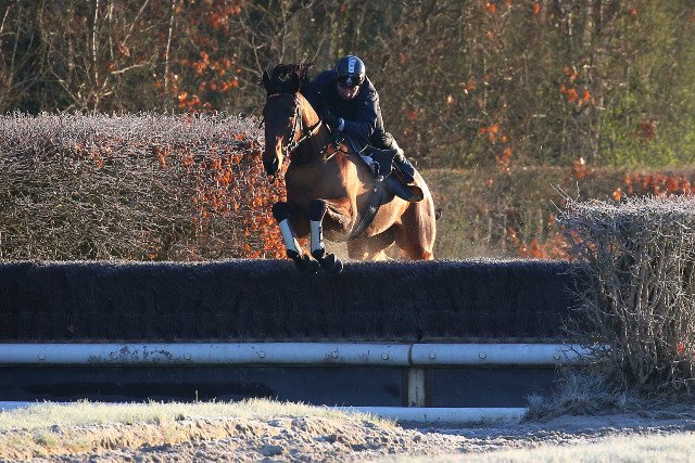 Mardi à Fontainebleau : James Reveley regarde entre ses jambes pour jauger l'écart avec les autres concurrents