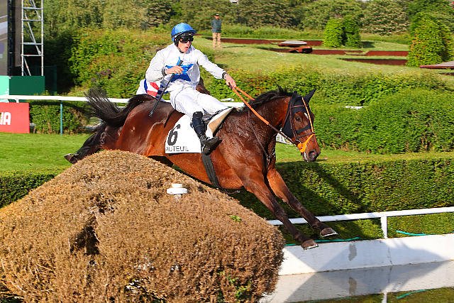 Samedi à Auteuil : Angelo Zuliani facilement reconnaissable avec ses genoux écartés sur l'obstacle