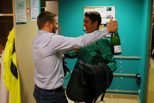 Dimanche à Chantilly: la traditionnelle douche de champagne